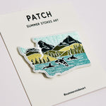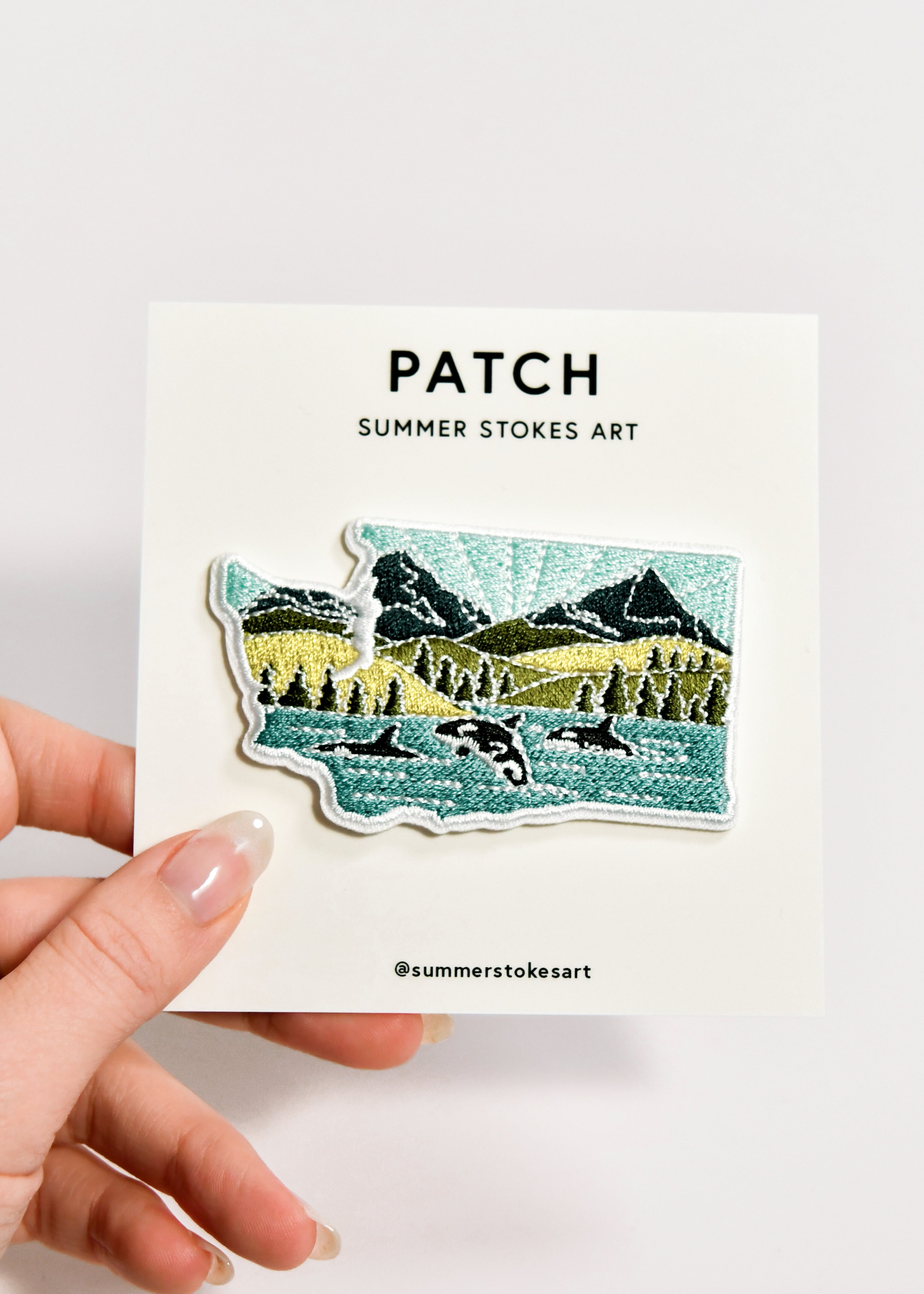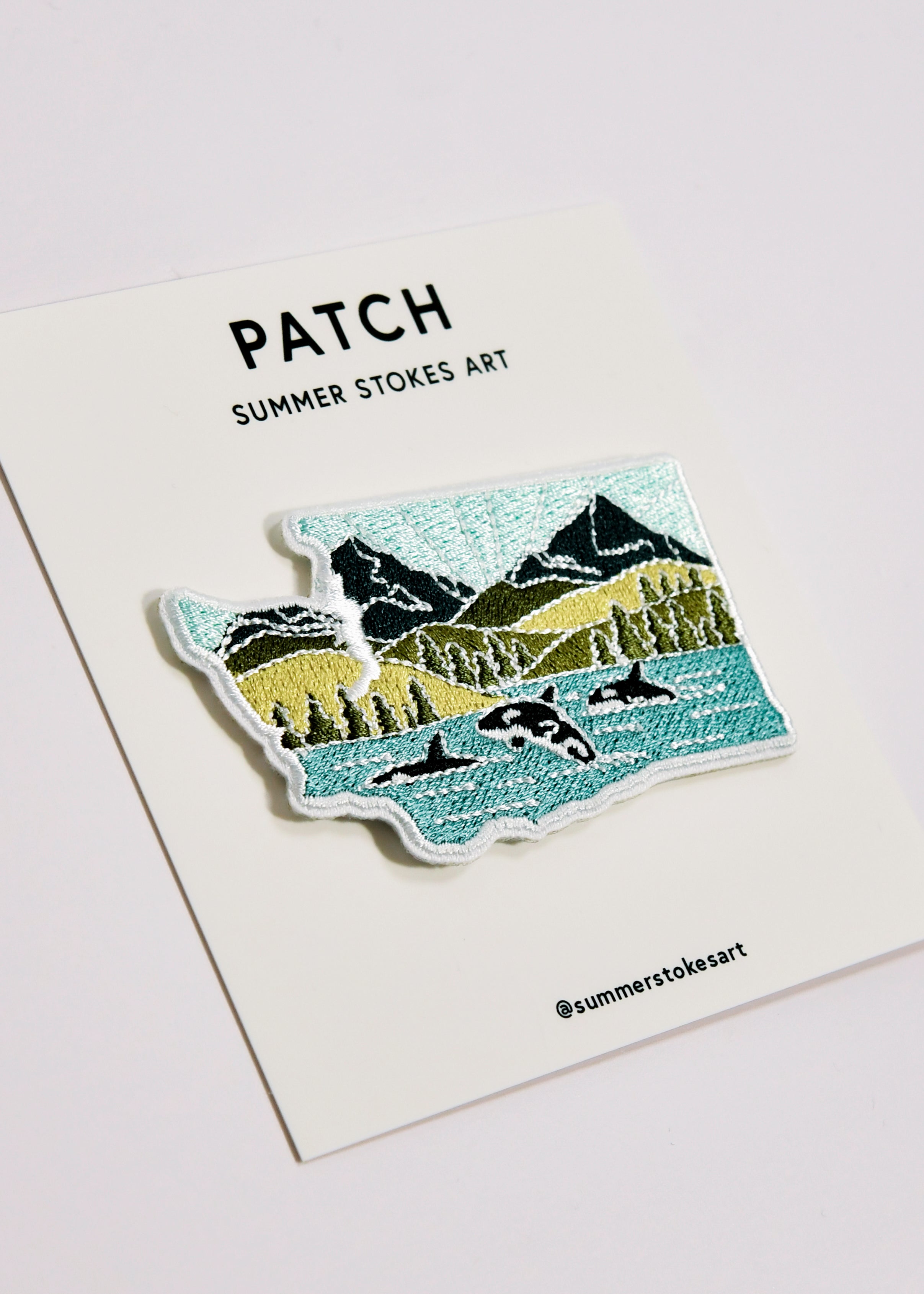 Each patch is 3" (the PERFECT size for that empty space you’re thinking of right now) and is machine-embroidered with fusible interfacing on the back. The featured artwork is an original design by Summer Stokes and is inspired by Washington’s beloved landscape.