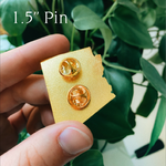 This gold enamel pin is the perfect addition to your backpack, jacket, beanie, tote, or cardigan. Whether you’re a seasoned pin collector or you’re just looking for something small for a little razzle dazzle, these colorful pins will do the job by showing home-state-hype in style.