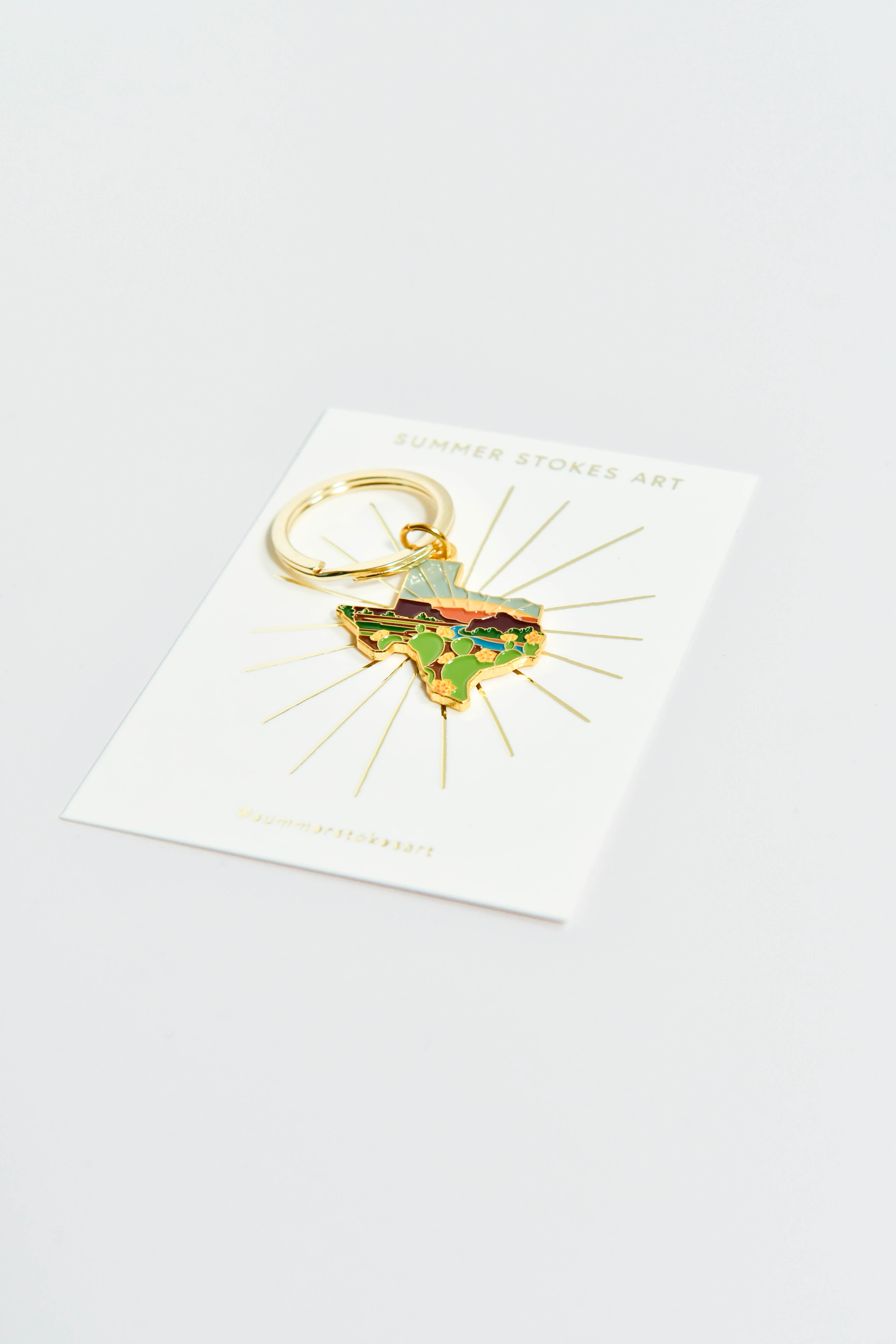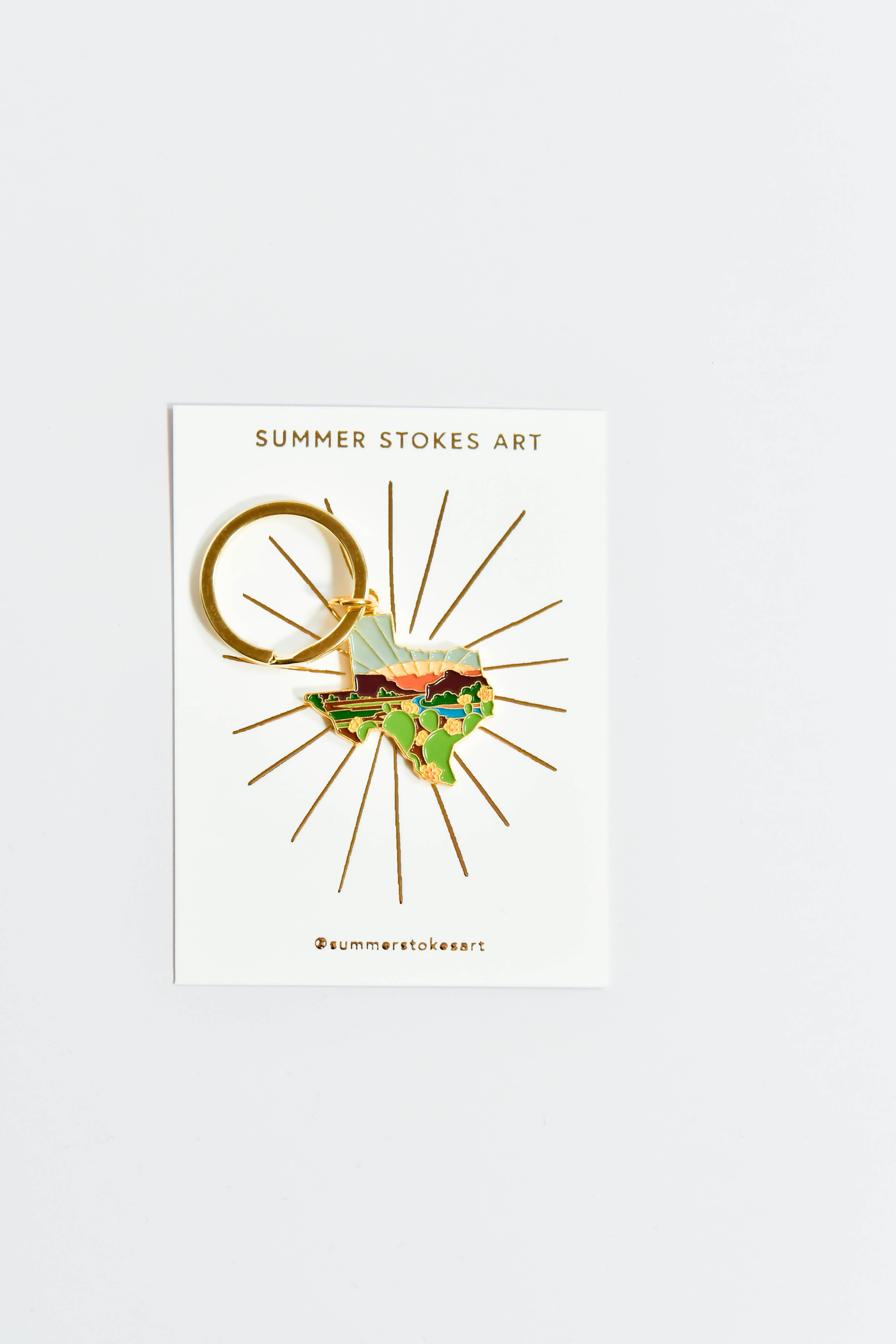 Each state charm is 1.5" (the PERFECT size to turn your keyring from just a tool to an ✨accessory✨) and is laser-engraved and enamel-filled, preserving every tiny detail of the design. The featured artwork is an original design by Summer Stokes and is inspired by Texas’s beloved landscape.