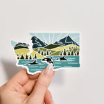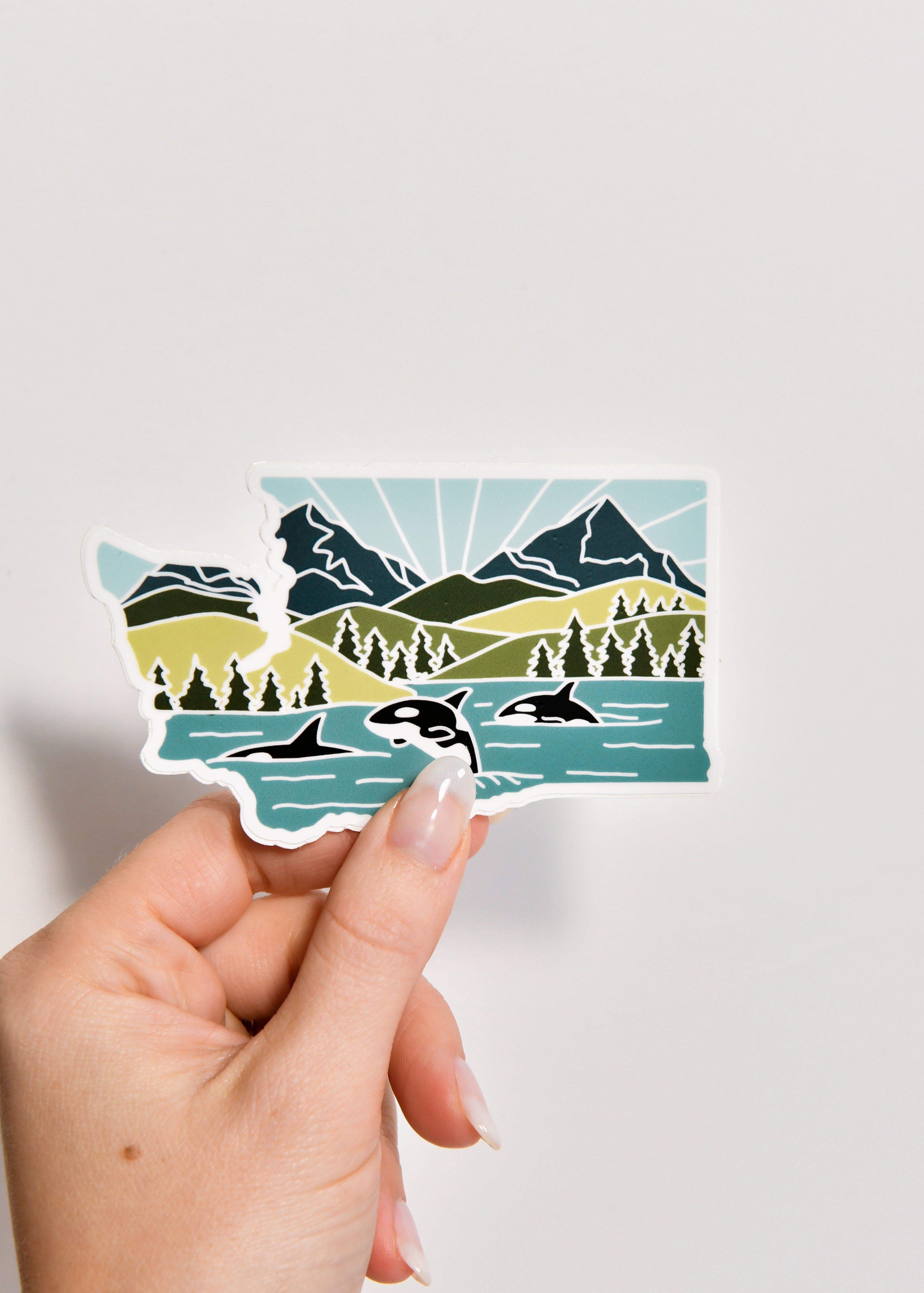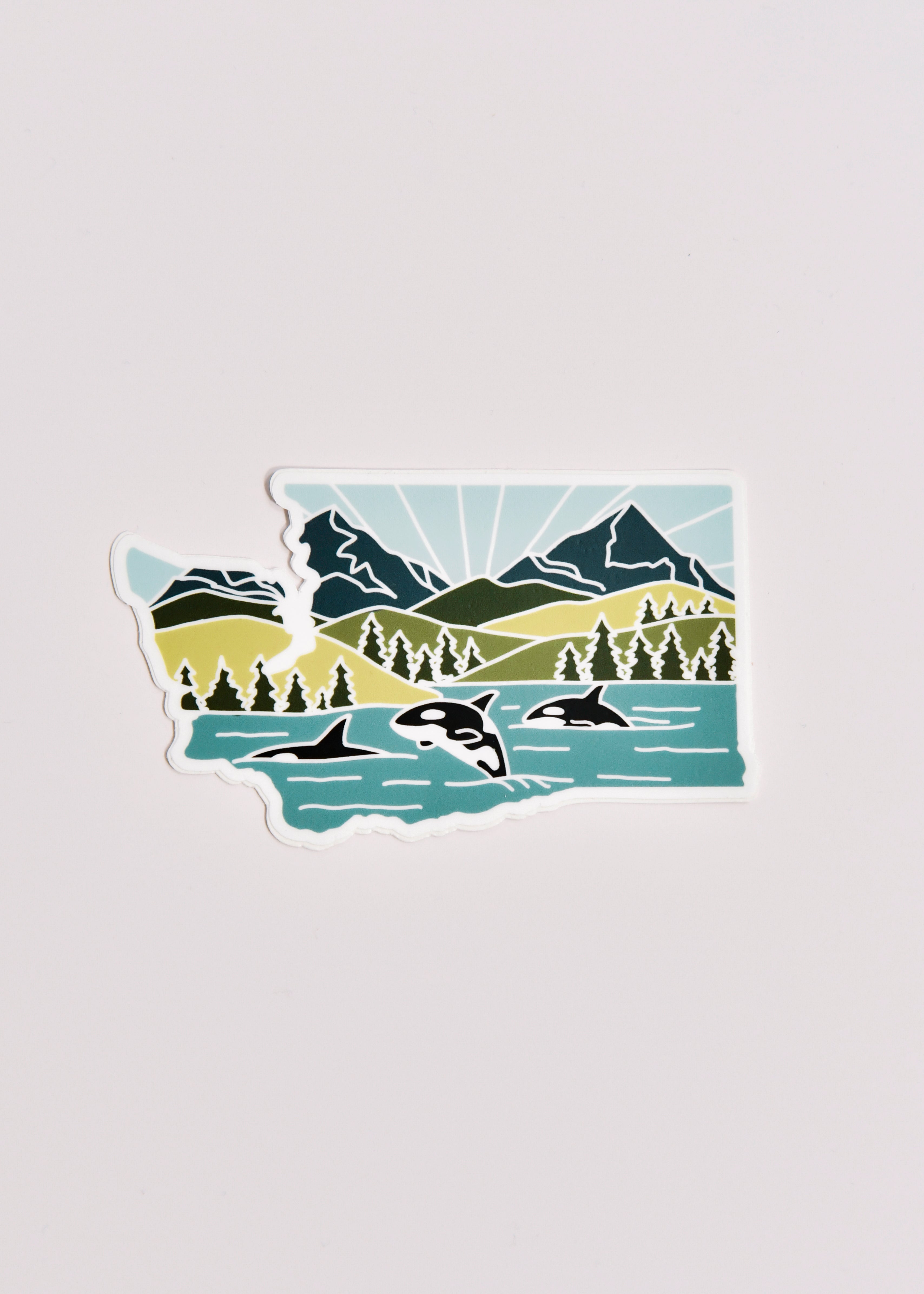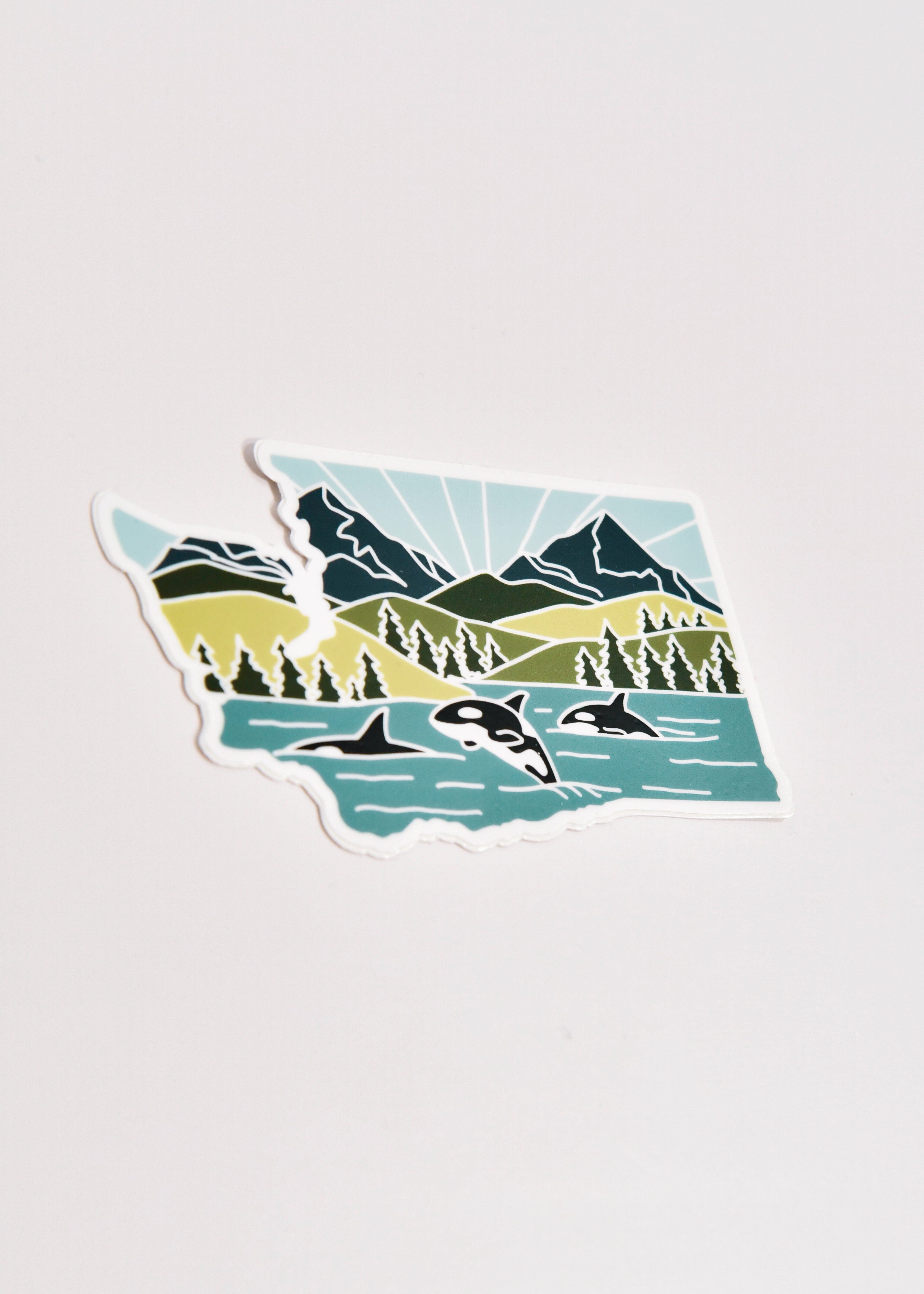 Each sticker is 4" wide—the PERFECT size to jazz up that empty surface you’re thinking of right now. The featured artwork is an original design by Summer Stokes and is inspired by Washington’s beloved landscape.